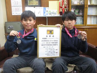 表彰の報告とはいえ、決勝で負けたことに2人とも悔しさをにじませていました。それぞれが目標を設定し、サッカーに取り組んでいくと気を引き締めていました。今の負けが将来の勝ちにつながることを信じています。頑張れ中部っ子!応援しています。