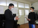 先日、校長室で賞状の伝達をしました。