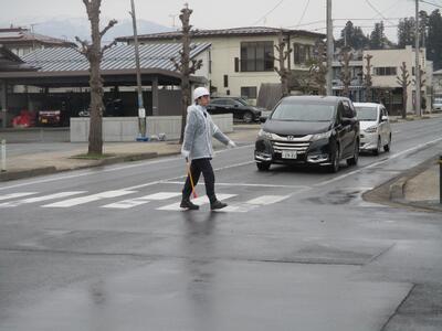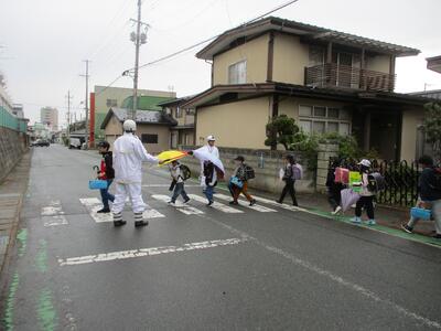4月7日より、新しい交通指導員さんが、元町三丁目交差点に立って朝の交通指導をしてくれています。