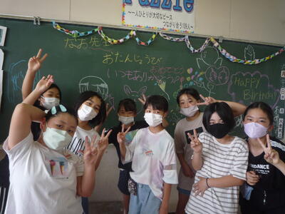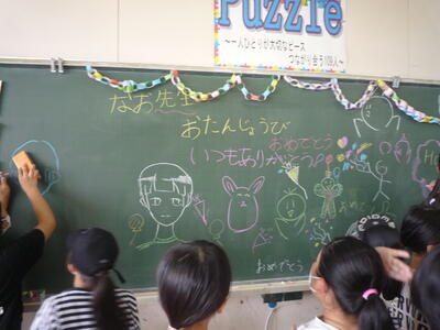 朝の教室から 投稿: 校長 (2022/06/23) 6月23日(木) 今日は5年生の教室から 今日は、担任の先生の誕生日。 先生が来る前に、子どもたちが黒板にお祝いメッセージを書いています。 先生が入ってくる教室の入り口はリボンで飾って。 本当に優しくて、あったかくて、思いやりのある子どもたちです。 こんな素敵な子どもたちが寒河江中部小にはいっぱいいます。