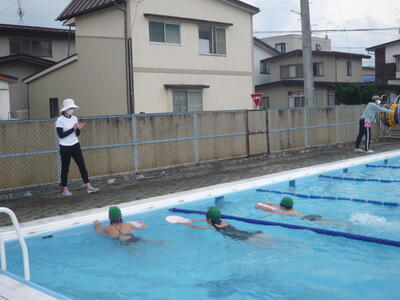 雷などの気象条件により、急にプール学習が中止となる場合がありますので、ご理解願います。