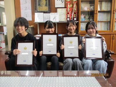 校長室で賞状の伝達をしました。