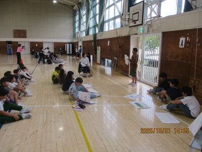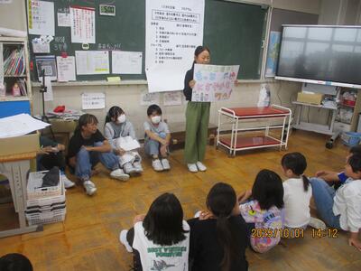12才の主張 投稿: 校長 (10/01) 6年生総合学習「かわる寒河江 かわらぬ寒河江」の学習の成果を、スピーチ形式で発表し伝えました。発表者は6年生、聞き手は3年生です。来賓(商工会青年部、学校運営協議委員、保護者、前校長)の方々もお招きし、感想を述べてもらいました。 聞き手だった3年生から 「ますます未来が楽しみになった。」と感想が述べられ、3年生も未来を描き始めることができたと感じました。