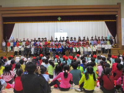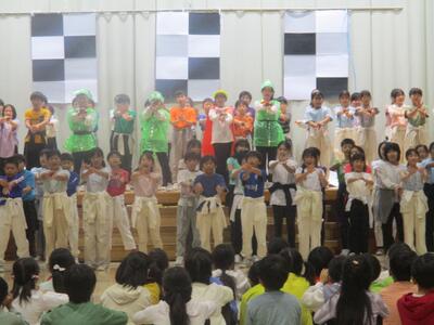 1年生らしくタイミングをとった大きな声。一生懸命だから自然に拍手が沸き起こりました。