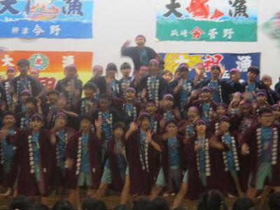 圧倒されました。声も、動きも、表情も、まとまりも全て!いいの一言!!6年生の魂だけでなく、法被を寄贈してくれた地域の方々のを思いが体育館を駆け巡りました。