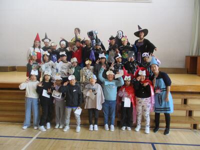 児童たちは、英語のクイズに答え、カードを作成し、「トリック・オア・トリート」の単語を覚えました。