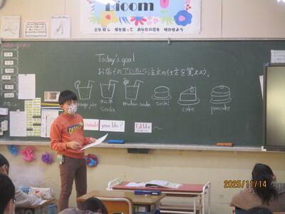 「セルフスタディは、教えてもらう授業でなく、教える人と教えられる人が共に学ぶ授業です!」というアドバイスを担任からもらい、T先生(児童)を中心に『お店でのていねいな注文のしかたについておぼえよう』をToday’s goal にした授業が開始。