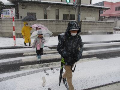 道路も凍結しており、車ものろのろ運転。車も児童たちも安全に気を付けていました。でも視界が悪くなる時もたくさんありました。前をよくみて車に注意しながら登下校をするように学校で声をかけていきます。地域や保護者の皆さんも見守ってください。