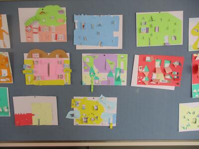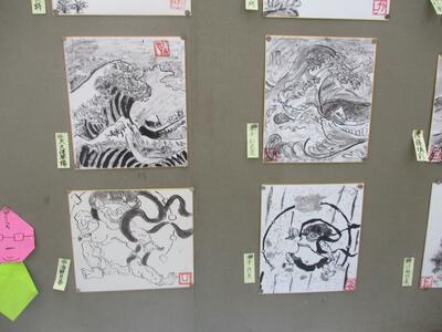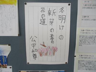 校内には、学びのあしあとがたくさんあります。これができるんだ~、こんなにできるんだ~と驚きます。中部っ子の姿を目に追うのも面白いのですが、掲示されている作品を見るのも楽しいです。楽しさいっぱいの空間です。