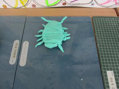 ↑今にも動き出しそう!巨大なダンゴムシの作品。よく観察していますね~。