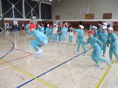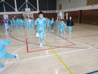 なわとびクラスマッチ3年! 投稿: 校長 (12:09) 今日は3年生。 ルールは3分間、長縄(8の字)で何人跳べたかを累計で競い合います。 これまで、時間と場所を工夫しながら練習してきました。なかなか上手です。声をかけ合っている様子にクラスの絆を感じました。 果たして結果は・・・・・・。 優勝は 1組! おめでとうございます。 116回(跳んだ人数) 1位になった1組は当然のこと、そのクラスを拍手で讃えることができた3年生みんなが立派です。