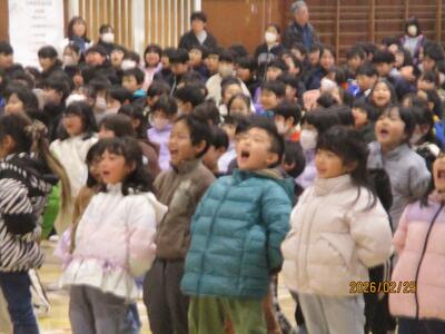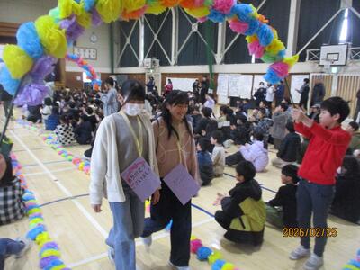 人数の関係上、本校の卒業式に参加する在校生は5年生のみ。全校児童が集まり6年生に感謝の気持ちを伝える機会は、今日の6年生を送る会だけ・・・・・・・。