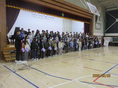 雰囲気は卒業式のよう・・・・・・。合唱、群読、エール、あいさつ、とてもいい送る会でした。