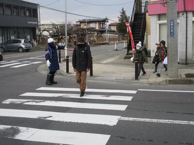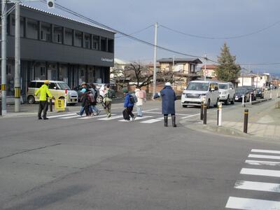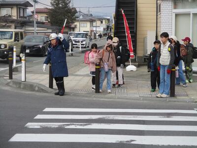 【明日は卒業式で5、6年生のみが登校することになっていますので、明日も交通指導をしてくださいます。】