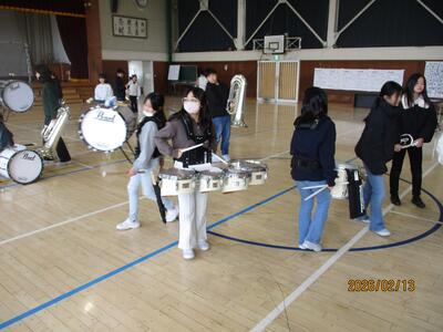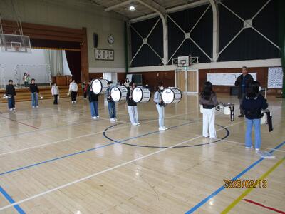 一週間後は、埼玉県さいたまスーパーアリーナで全国大会。今日は、大江町体育センターで壮行演奏会。
