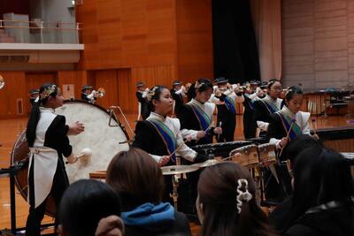 【インフルエンザ等で5年生3名が参加できなかったという緊急事態もありました。それを乗り越えた演奏演技ですが、残念な思いもあるのは確か・・・・。来年、同じ舞台に立てるようにみんなで頑張ってほしいです。】