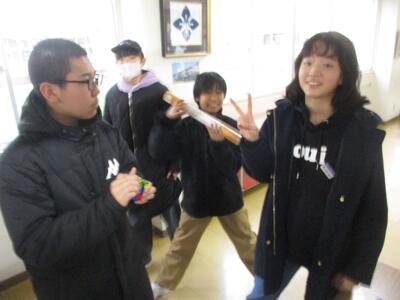 ↑校長室前のルービックキューブに挑戦!